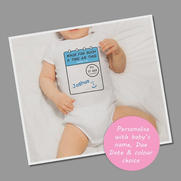 It’s not just the ideal first outfit for the new prince or princess, but the story behind it helps us as parents understand that even when things get a little out of hand – the way they do when kids take over our homes – God has it all under control… and planned right down to the day!
